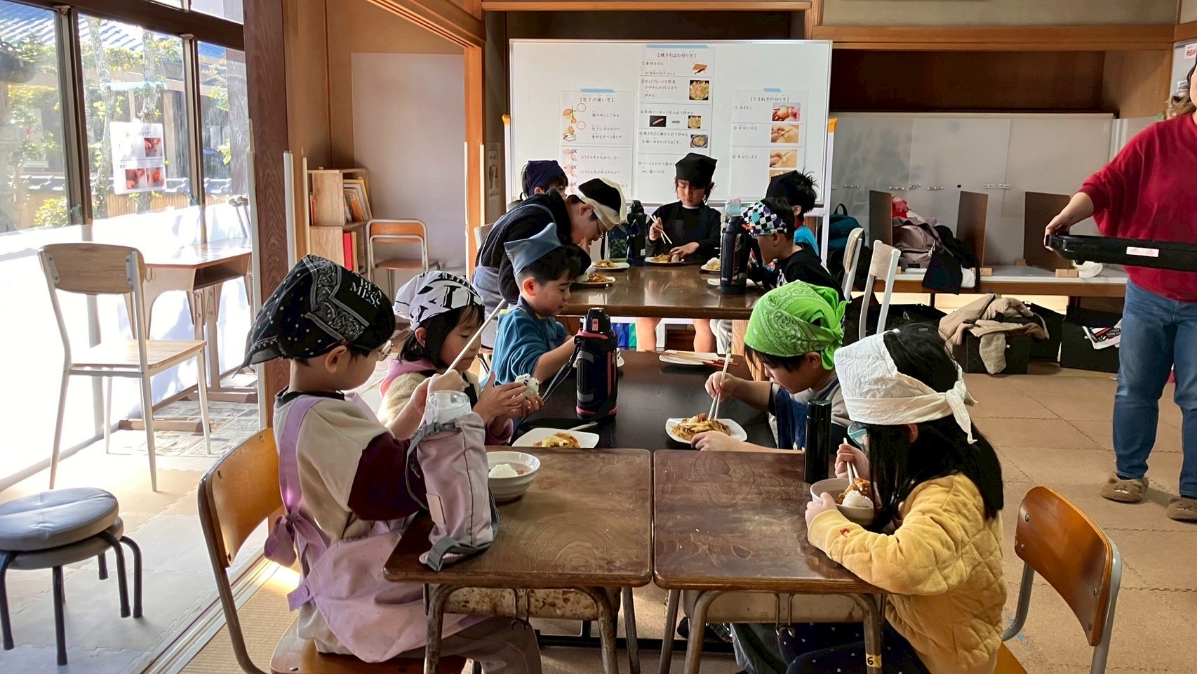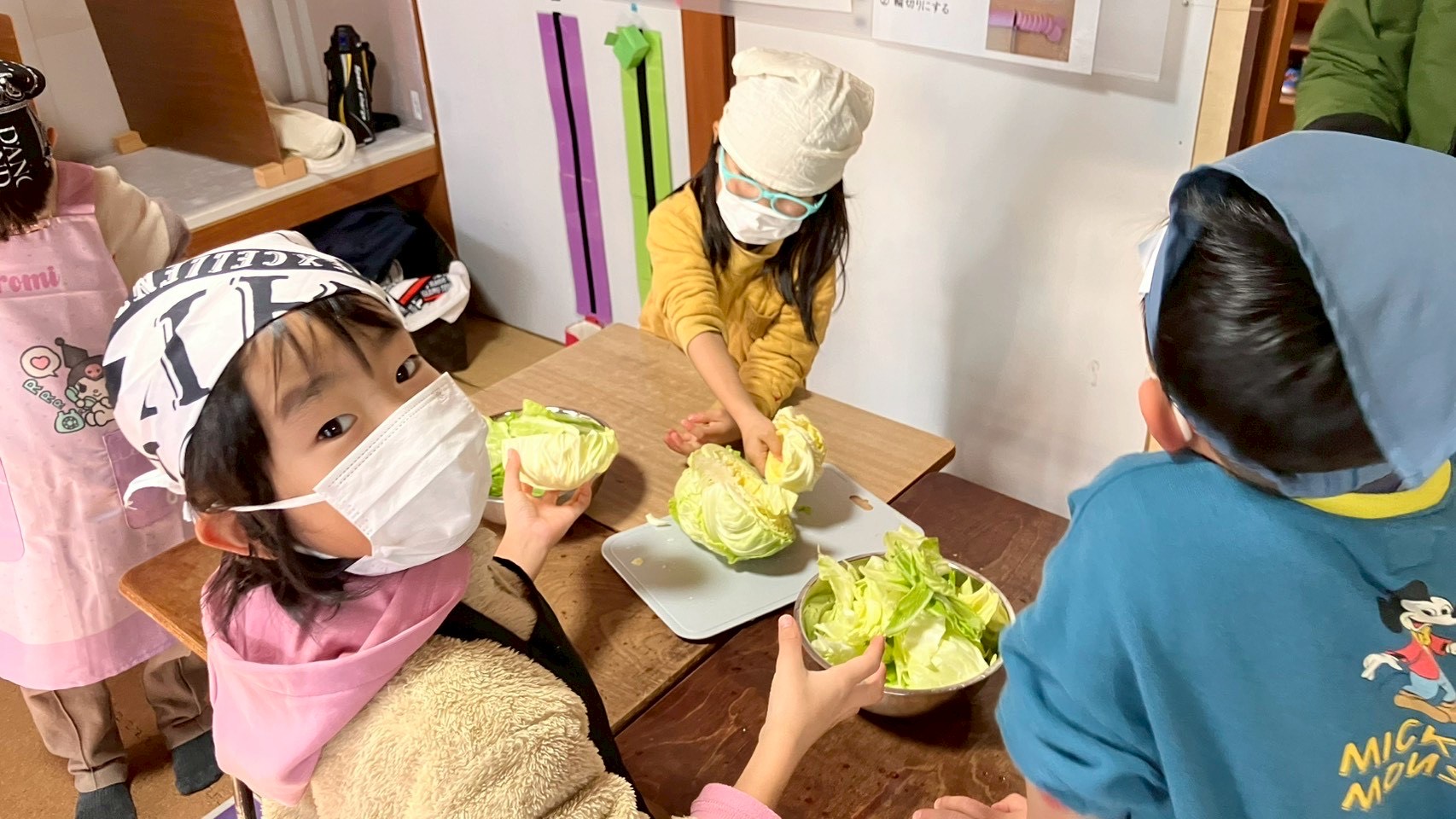 みんなで「玉ねぎ班」「ソーセージ班」「にんじん班」など、食材ごとに手分けをして切る、千切る、皮をむくなどの工程を行いました。
